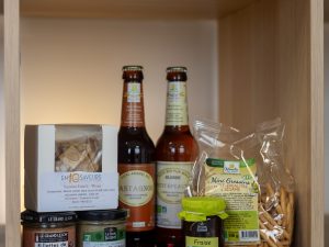 Elle se compose de 6 produits dont 1 bouteille d’alcool qui viendront agrémenter apéro, pause café ou goûter. Des produits maison, artisanaux et respectueux de l’environnement et de l’humain